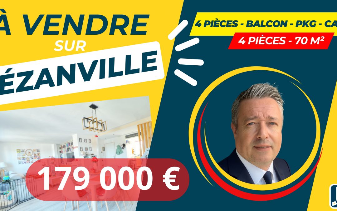 JEROME BEAUMONT IMMOBILIER vous présente en EXCLUSIVITÉ sur la commune d’Ezanville cet APPARTEMENT de 4 Pièces principales d’une surface loi Carrez de 69,58 m² + un Balcon de 2 m² + un Parking privatif + une Cave en sous-sol, au sein d’une résidence calme « EZANVILLE 2 » édifiée en 1968 à proximité des commerces, des écoles et transports.