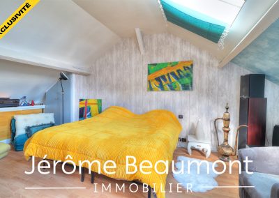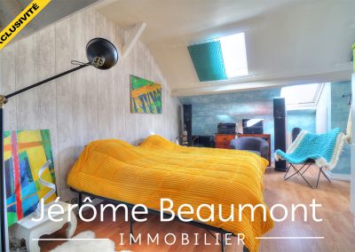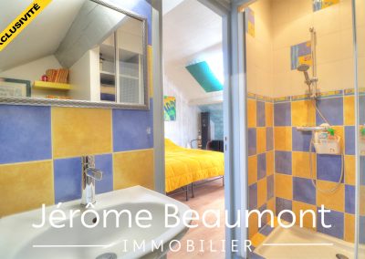 Les combles sont aménagés en une grande chambre avec rangements et une salle d’eau avec water-closet.