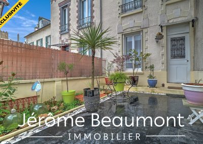 L’entrée de la maison s’effectue en passant par une première cour privative, le rez-de-chaussée comprend un séjour traversant de 27 m² avec une belle cuisine américaine, un accès direct à une seconde cour privative d’environ 23 m², à la suite se trouve une dépendance de 34 m² comprenant une buanderie/chaufferie ainsi qu’un atelier, donnant sur un jardin d’environ 20 m².