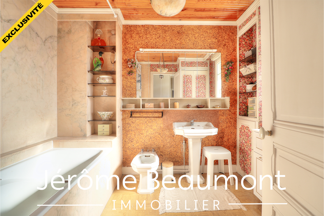 Présence d’un sous-sol total comprenant une pièce aménagée (14,50 m²), caves, buanderie et chaufferie.