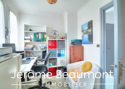 L’étage se compose d’un palier desservant un séjour traversant, un bureau, une chambre, une salle de bains et un wc séparé.